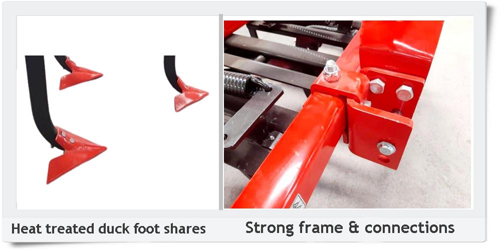 Cultivator is used to stir, loosen and aerate the soil, break up the clods of soil, cut the weeds and puts on the soil surface, mix seeds or mineral fertilizers spread on soil surface and to hoe plant lines after making necessary adjustments. And it is used for secondary dressing of soil, preparing seed bed, cutting the root crops, improving the distribution of water and preventing the soil from making sole. It provides much easier maintenance and repair opportunities. Its special bushing system with the lubricating and hardening can provides operation and economy without being eroded for many years. Cultivator keeps the moisture of soil as it does not process the soil by overturning and it hoes and airs by the moistu adjusting the changable tines distances.