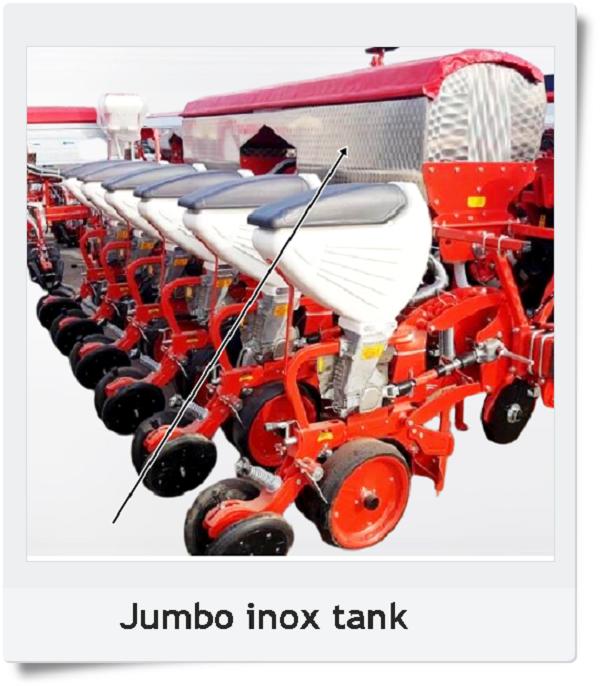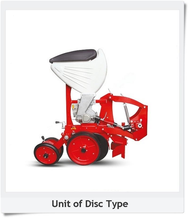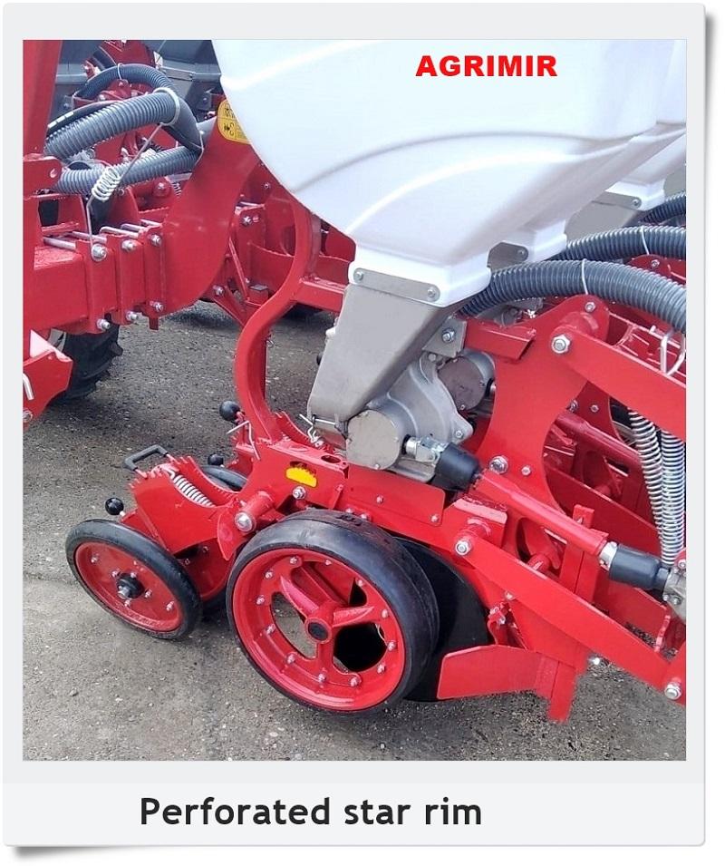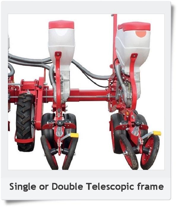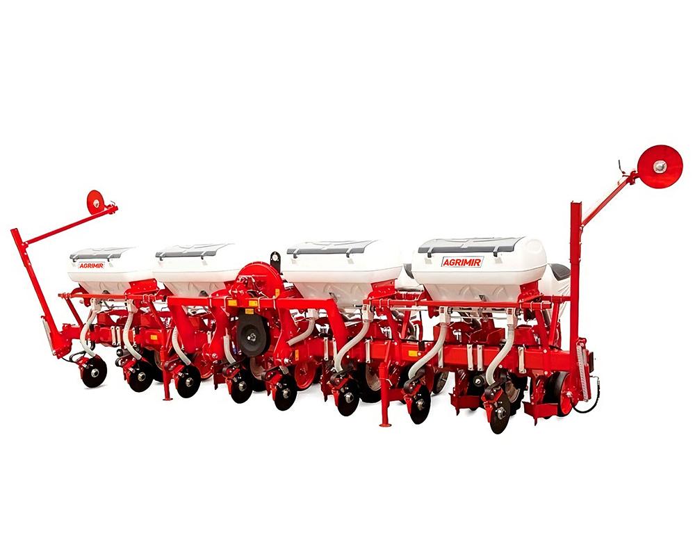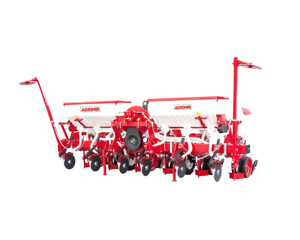 TIt is a machine for sensiti TIt is a machine for sensitive seeding for sugar beets, sunflower, corn, spinach, soya, tomato, peas, cotton, water melon, onion, sugar melon, pumpkin at the requested sowing distances and on the requested row and intervals. The aspirator is hanged to the three-point hanging system and gets its drive from the tail-shaft. All of the sowing units are connected on the chassis via parallelogram system. On the front part of the each sowing unit is an adjustable soil scraper. The sowing legs are manufactured at the Disc type. The pressure wheels are existed right behind the units. The marker system is also available on the both sides of the machine. The marker operates automatically or with lift av over the three-point hanging system.The drive is transmitted over the right wheel via the gear-box group gears to the shaft; then to the units by means of shaft system existed on every units.Fertilizer tanks are in “V” shape, have sieves and fertilizer discharge levers for easy cleaning after sowing. Pneumatic seeder provides a sensitive sowing since it transfers the motion activity generated by the wheels, to the seeder units with the help of shaft allowing easy adjustment of over row distance. Thanks to these specifications, it allows sowing on all kinds of soil conditions and d allows sowing on all kinds of soil conditions and dropping fertilizer and seed into the equal depth.