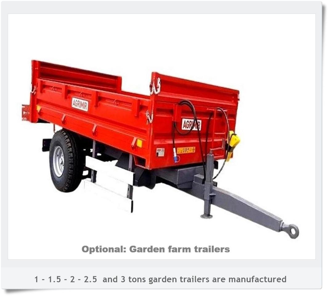 Trailer is one of the equipments that must be included each agricultural establishments and farmers. It is commonly used for the transport of goods and materials in farm, field and gardens. Our modern trailers are intended for transport of various materials, in particular agricultural produce where precise tightness is required. Our innovative trailers are marked by: well-equipped standard versions, high loading capacity of box-bodies, long life using period. Some standard features like light system, tool box, chock, water tank, color option are available.